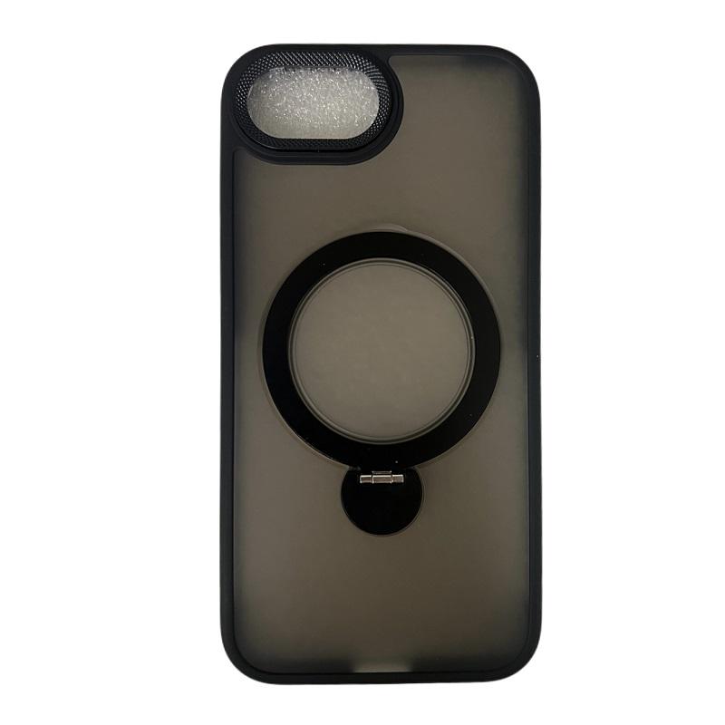 FUNDA DE SILICONA LIQUIDA ESMERILADA + SOPORTE MAGNÉTICO GIRATORIO DE 360 GRADOS PARA APPLE IPHONE 16E NEGRO