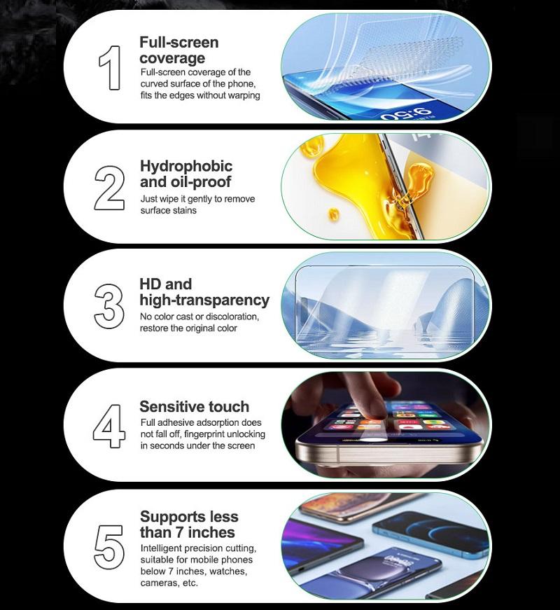 4. Toda la pantalla cubre la superficie curva del teléfono y se ajusta al borde sin deformarse.