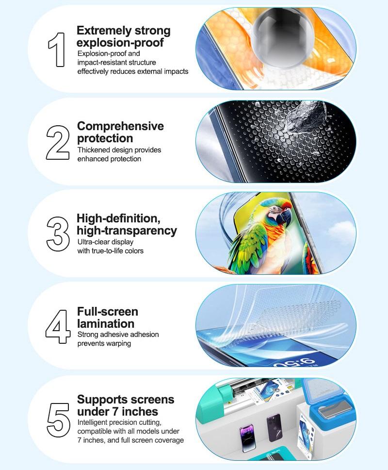 SUNSHINE SS-TP350 PELÍCULA DE HIDROGEL A PRUEBA DE EXPLOSIONES DE ALTA DEFINICIÓN 50PCS 7.0 INCH UNIVERSAL PARA SUNSHINE SS-890C MAQUINA INTELLIGENTE CORTE