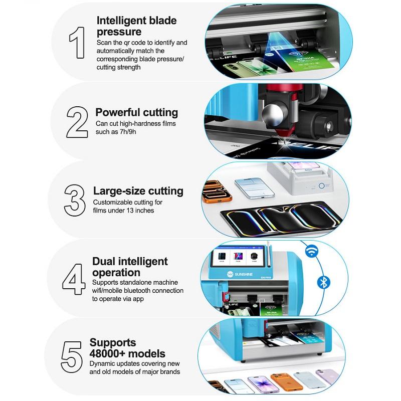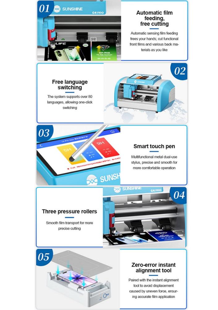 SUNSHINE C4 PRO MÁQUINA CORTADORA DE PELÍCULA INTELIGENTE DE ALTA DUREZA PARA CORTAR PELÍCULAS DURAS DE ALTA DUREZA COMO 7H / 9H HASTA 13 PULGADAS