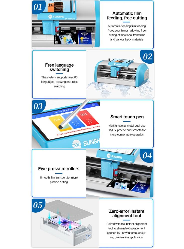 SUNSHINE C4 PRO MAX MÁQUINA CORTADORA DE PELÍCULA INTELIGENTE DE ALTA DUREZA PARA CORTAR PELÍCULAS DURAS DE ALTA DUREZA COMO 7H / 9H HASTA 16 PULGADAS