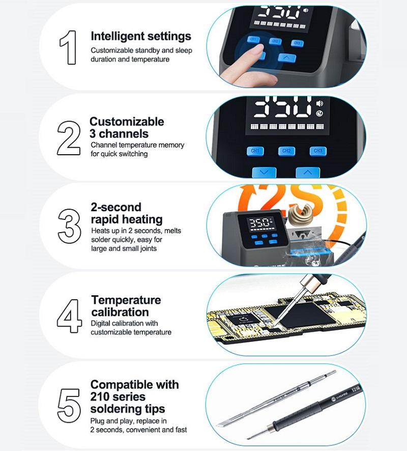 SUNSHINE S3 60W ESTACIÓN DE SOLDADURA INTELIGENTE CALENTAMIENTO EN 2 SEGUNDOS CUSTOMIZABLE 3 CHANNELS PARA 210 MANGO
