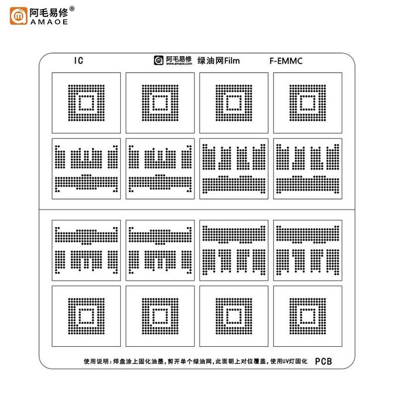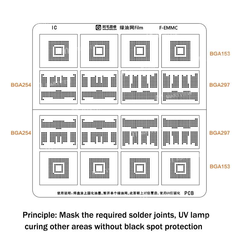 AMAOE F-EMMC RED DE PETRÓLEO VERDE PLANTILLA METALICA DE CHIP IC PARA BGA254 / BGA153 / BGA297
