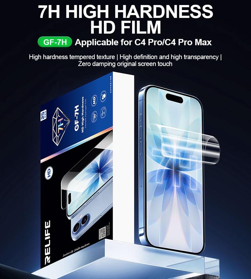 RELIFE GF-7H MEMBRANA DE HIDROGEL DE ALTA DEFINICIÓN A PRUEBA DE EXPLOSIONES 25PCS 7.0 INCH UNIVERSAL PARA SUNSHINE C4 PRO / C4 PRO MAX MAQUINA INTELLIGENTE CORTE