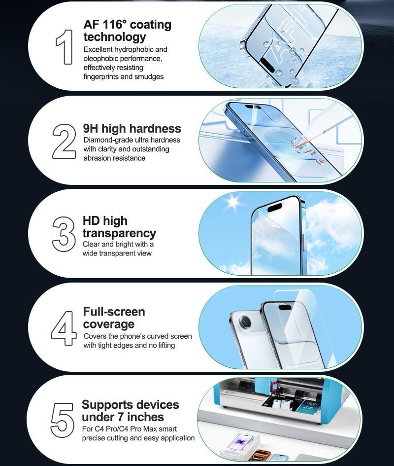 RELIFE GF-9H MEMBRANA DE HIDROGEL DE ALTA DEFINICIÓN A PRUEBA DE EXPLOSIONES 25PCS 7.0 INCH UNIVERSAL PARA SUNSHINE C4 PRO / C4 PRO MAX MAQUINA INTELLIGENTE CORTE