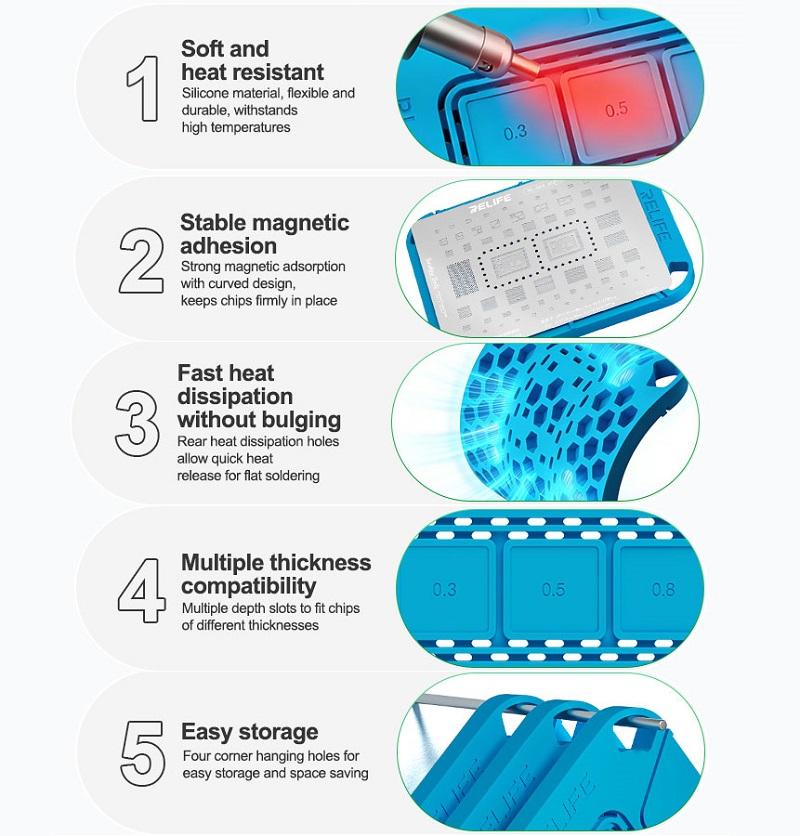 RELIFE RL-004R ALMOHADILLA MAGNÉTICA CURVA PARA SOLDADURA PARA SOLDADURA DE CHIPS CPU E IC DE DISCOS DUROS