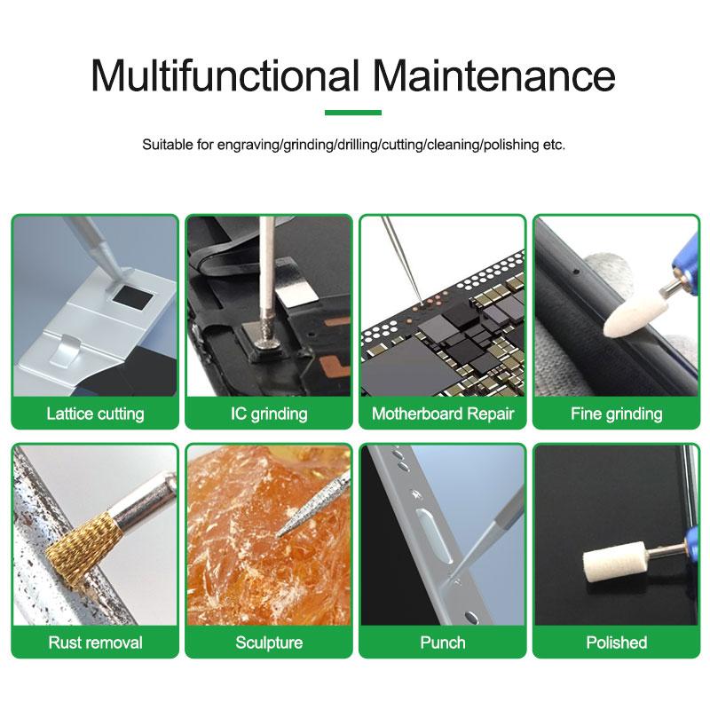 RELIFE RL-068B LÁPIZ PULIDOR INTELIGENTE RECARGABLE AJUSTE DE 2 VELOCIDADES EQUIPADO CON 8 CABEZALES DE MOLIENDA
