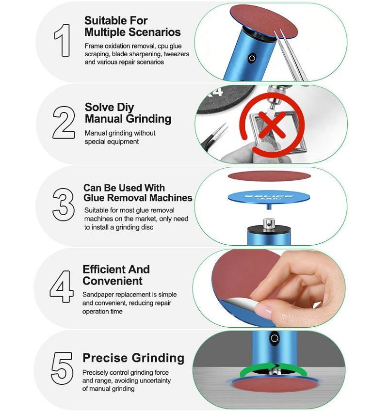 RELIFE TX4 JUEGO DE DISCOS DE LIJADO PUEDE USARSE CON MÁQUINAS REMOVEDORAS DE ADHESIVO PARA ELIMINAR CAPAS DE ÓXIDO DE LOS BORDES / RASPAR ADHESIVO DE CPU / AFILAR CUCHILLAS / PINZAS ETC