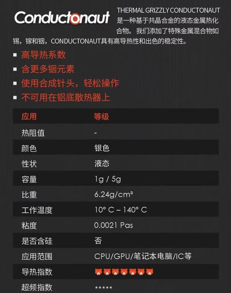 THERMAL GRIZZLY TG-C-001-R GRASA TÉRMICA DE METAL LÍQUIDO 1G (NOTA: NO UTILIZAR SOBRE DISIPADORES DE CALOR CON BASE DE ALUMINIO)